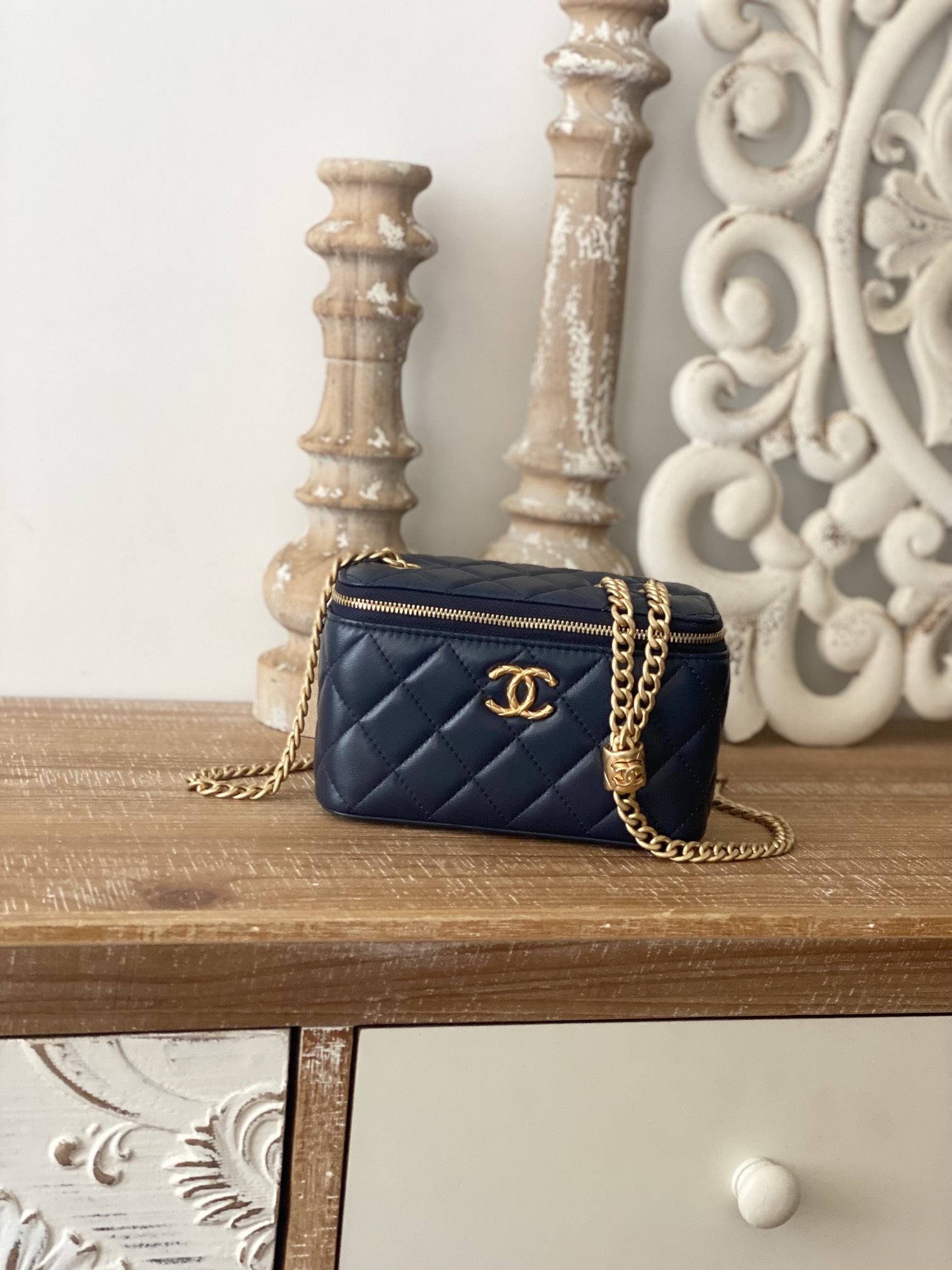 Be the first to review “Chanel 81222 Vanity Leather Crossbody Lipstick Bag Dark Blue” Cancel reply