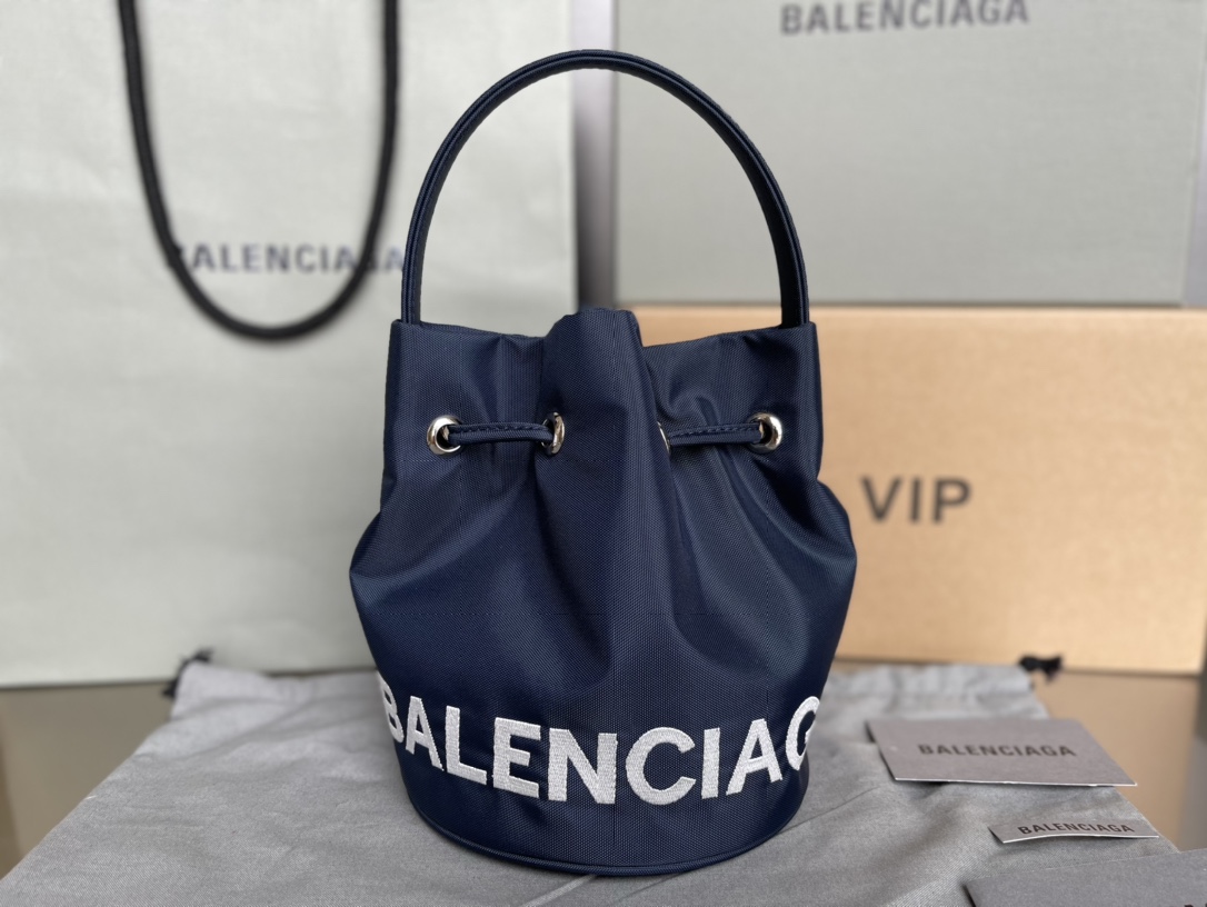 Copy Balenciaga Wheel XS Drawstring Bucket Bag in Navy