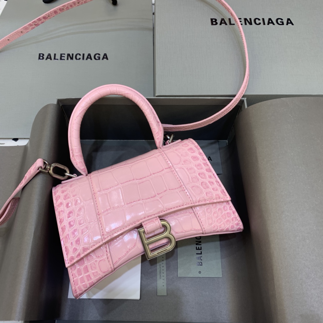 Balenciaga Hourglass 19cm Chain Bag in Shiny Crocodile Embossed Leather Peach