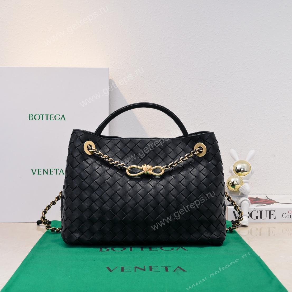 Bottega Veneta Andiamo Intrecciato Leather Top Handle Bag 32cm Black