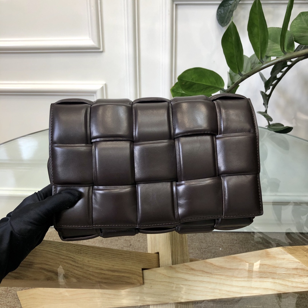 Bottega Veneta Large Padded Cassette Intreccio Leather Cross-body Bag Dark Coffee