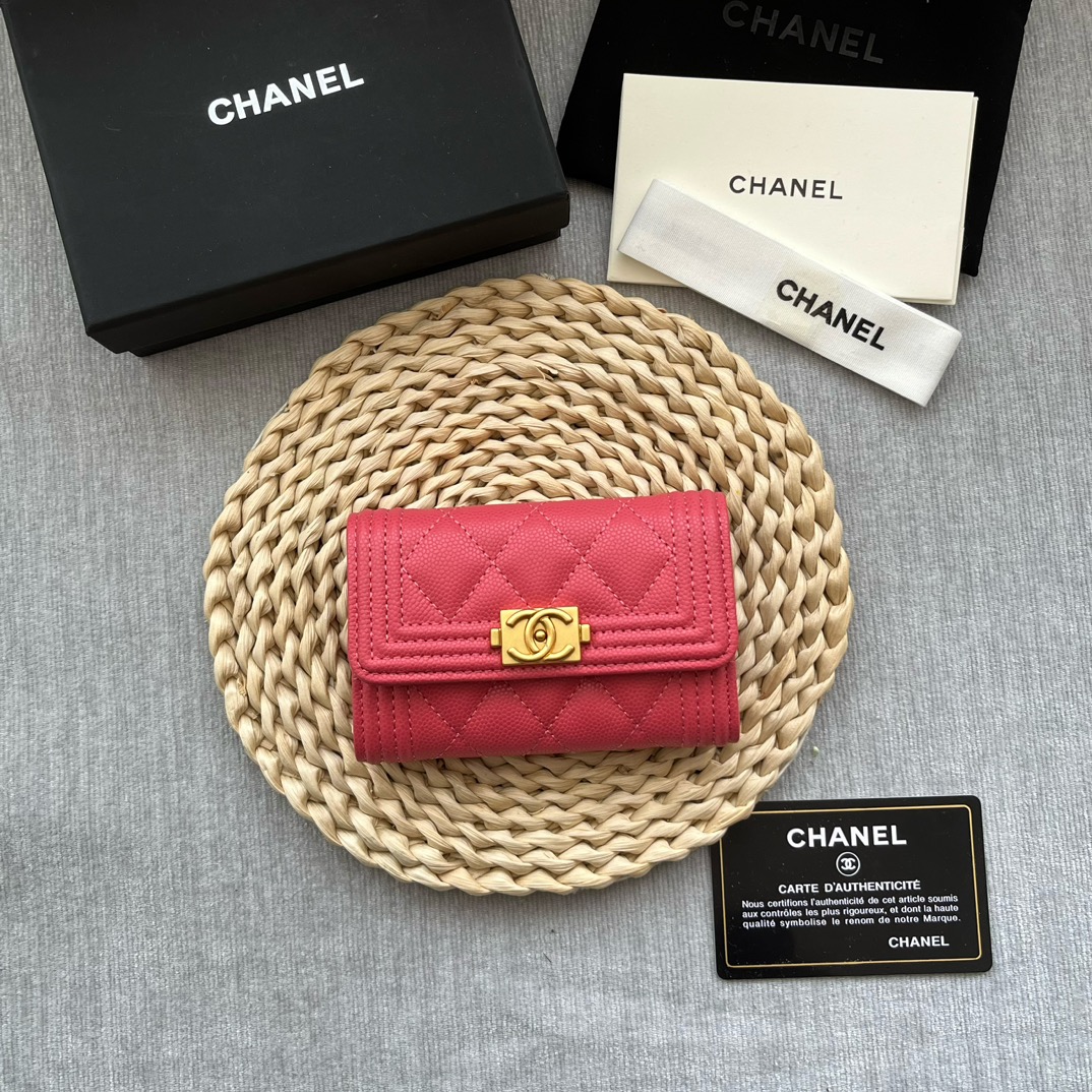 Chanel 80603 Leboy Card Wallet Grained Calfskin Red