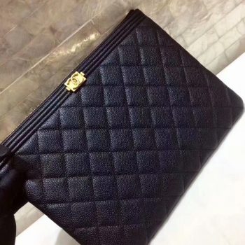 Cheapest BOY CHANEL Pouch Grained Calfskin Gold-Tone Metal Black