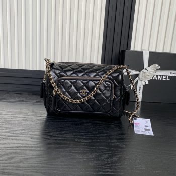 Chanel AS4933 Bowling Bag Shiny Crumpled Lambskin Gold-Tone Metal Black