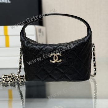 Chanel AP4484 Hobo Bag Black in Grained Leather