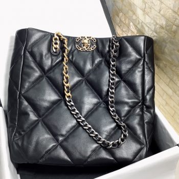 Chanel 19 Shopping Bag Lambskin Gold-Tone Silver-Tone Ruthenium-Finish Metal Gray AS3519