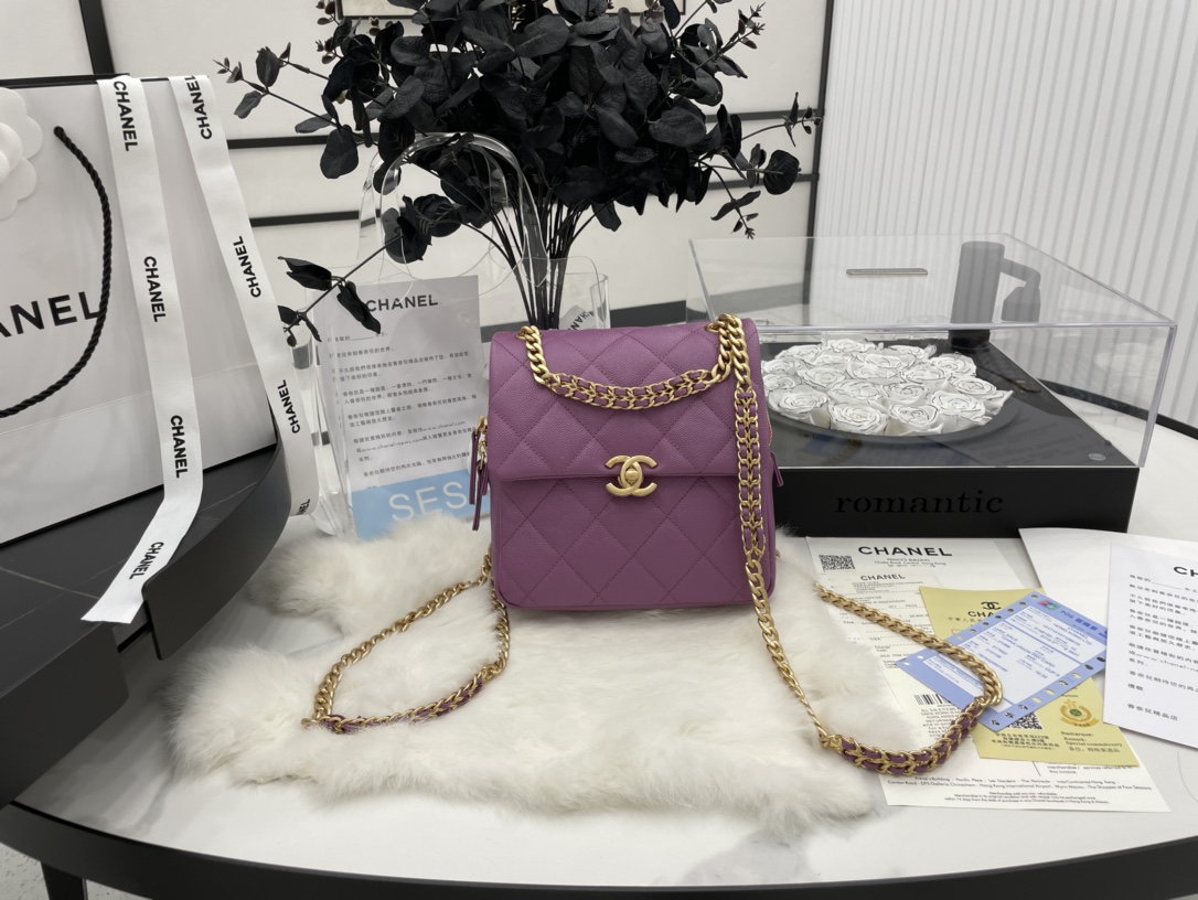 Chanel AS3108 Backpack Grained Calfskin Gold-Tone Metal Purple