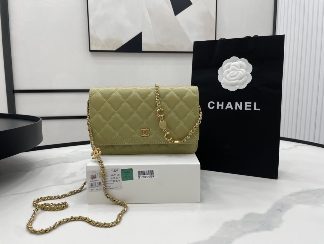 Chanel Wallet on Chain With Heart Chain Green Leather A68108