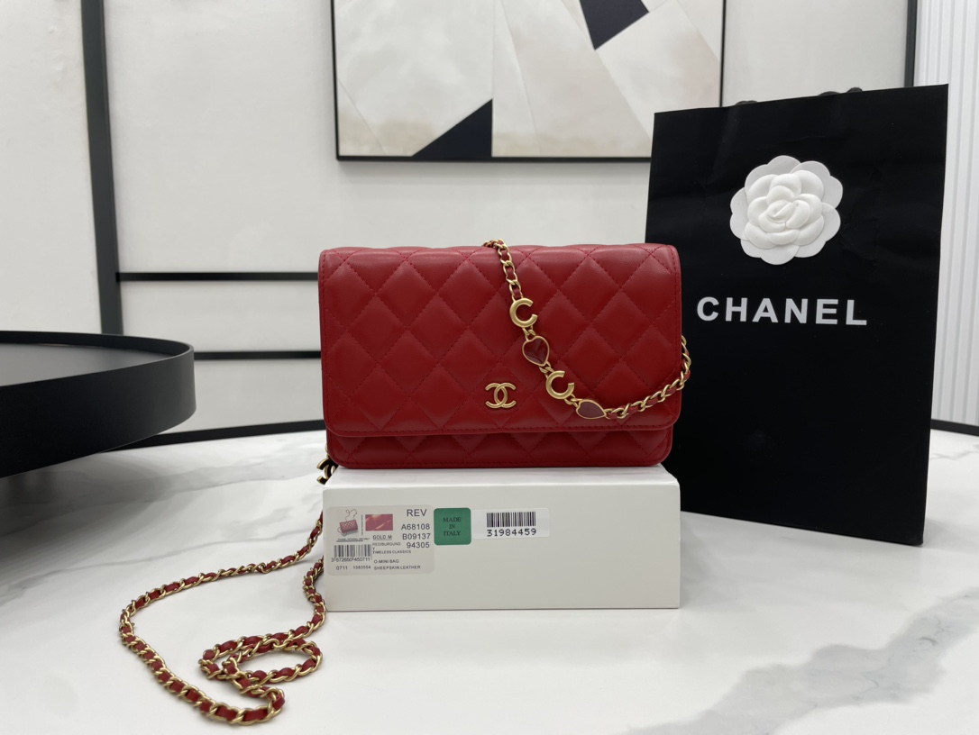 Chanel Wallet on Chain With Heart Chain Red Leather A68108