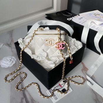 Chanel 24A Chanel CC Adjustable Buckle Chain Strap Black Vanity Case AP3941 White