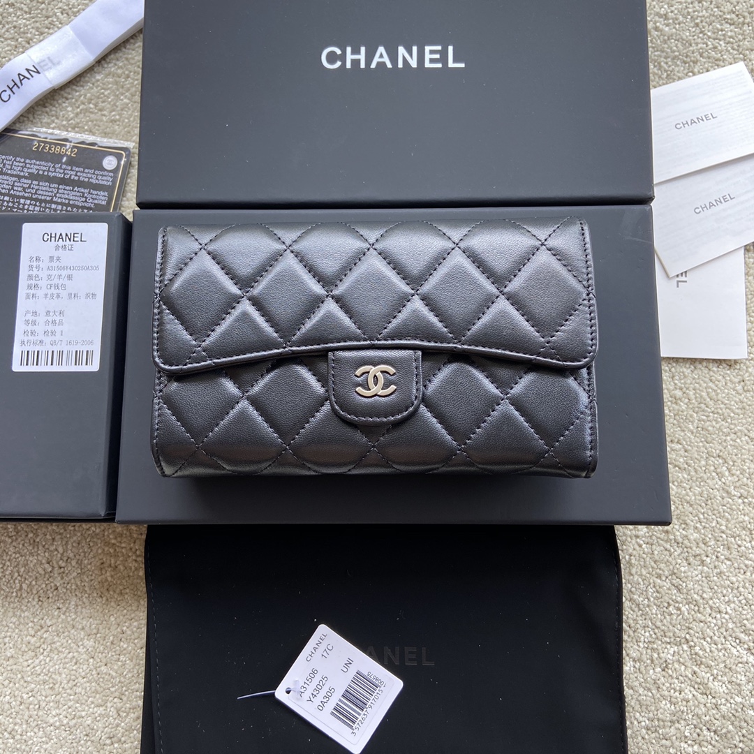 Be the first to review “Chanel Wallet Lambskin Silver Black AP31506” Cancel reply