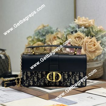 Dior 30 Montaigne Avenue Small Top Handle Bag Black Leather and Oblique