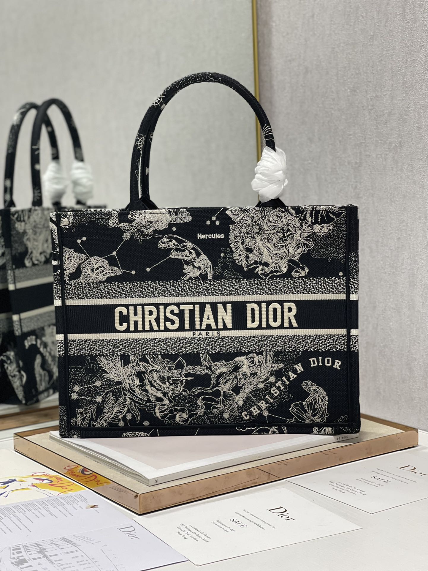 Dior 36cm Book Tote Latte Toile de Jouy Zodiac Embroidery Black