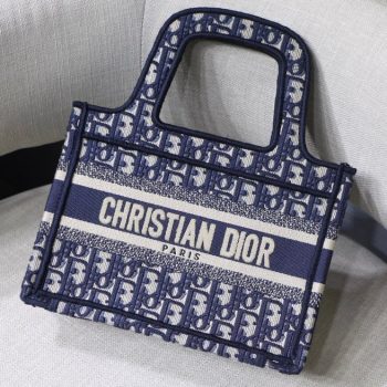 Dior 36cm Book Tote Navy Blue Toile de Jouy Stripes Embroider