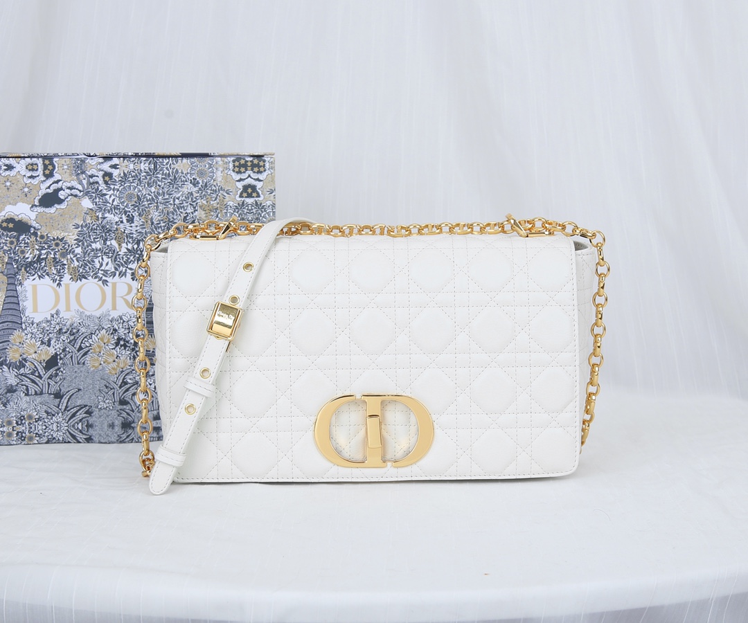Dior Caro Bag Supple Cannage Calfskin White 28cm