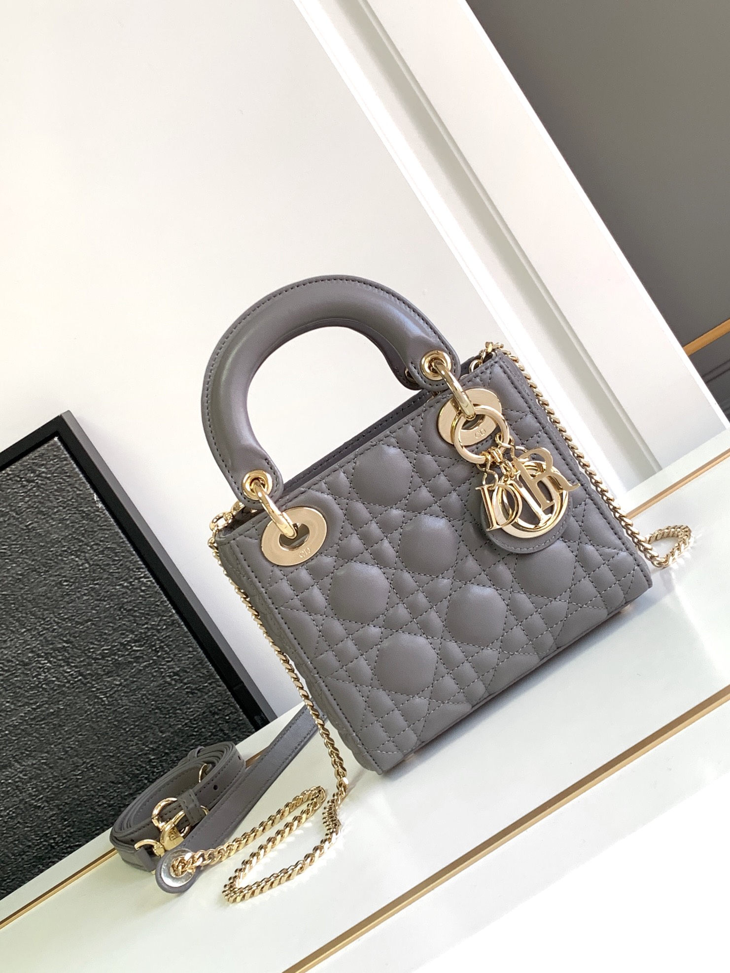 Mini Lady Dior Bag Lambskin Elephant Gray With Gold Hardware 17cm