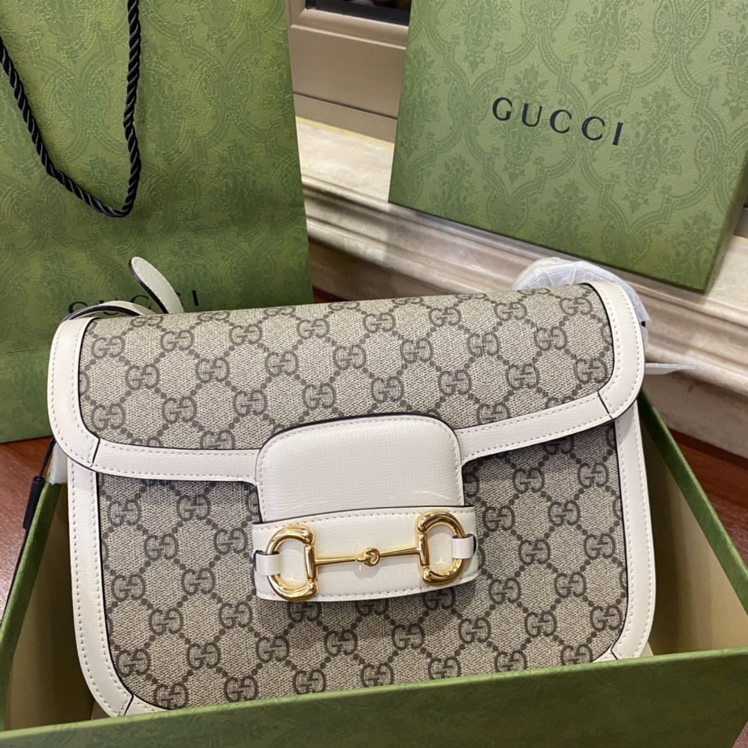 Nice Review Gucci  Horsebit 1955 Shoulder Bag White Ebony GG Supreme Canva 602204 Copy