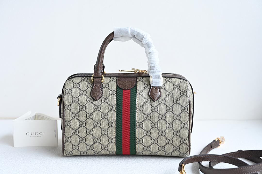Gucci 772061 Ophidia GG Small Top Handle Bag Beige and ebony GG Supreme Canvas
