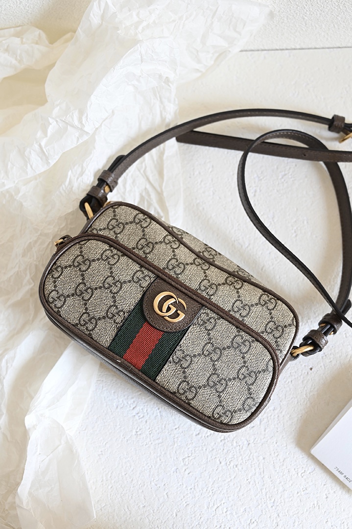 Gucci 722557 OPHIDIA MINI BAG Beige and ebony GG Supreme Canvas