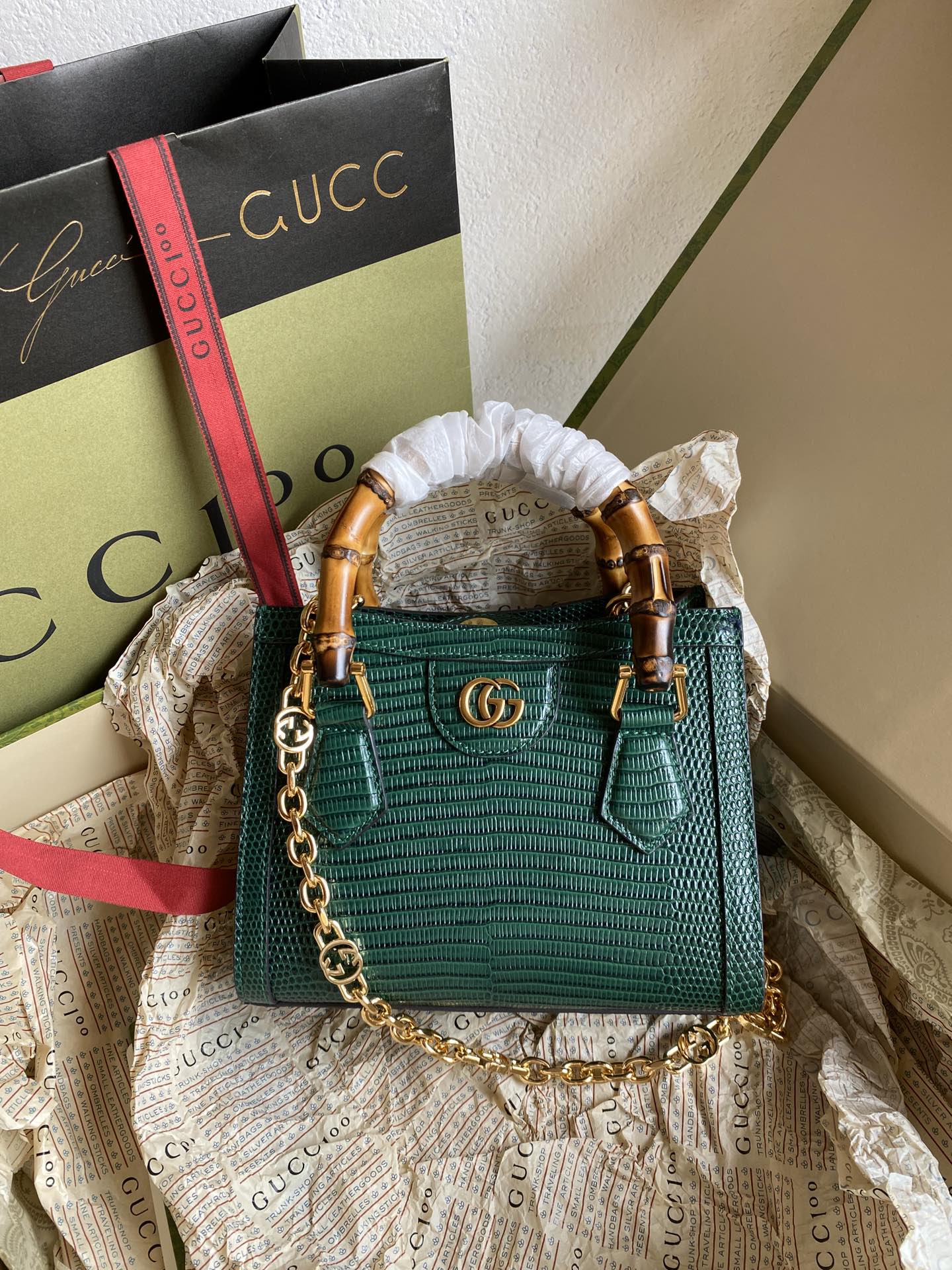 Gucci Diana Green lizard Mini Bag With Removable Chain Shoulder Strap