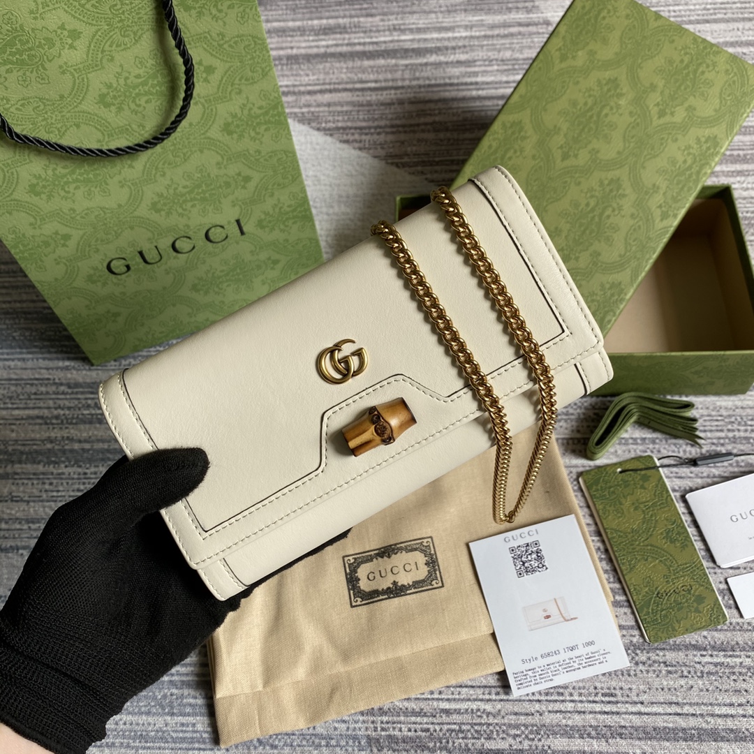 Replica Gucci 658243 Diana Chain Wallet with Bamboo White Leather
