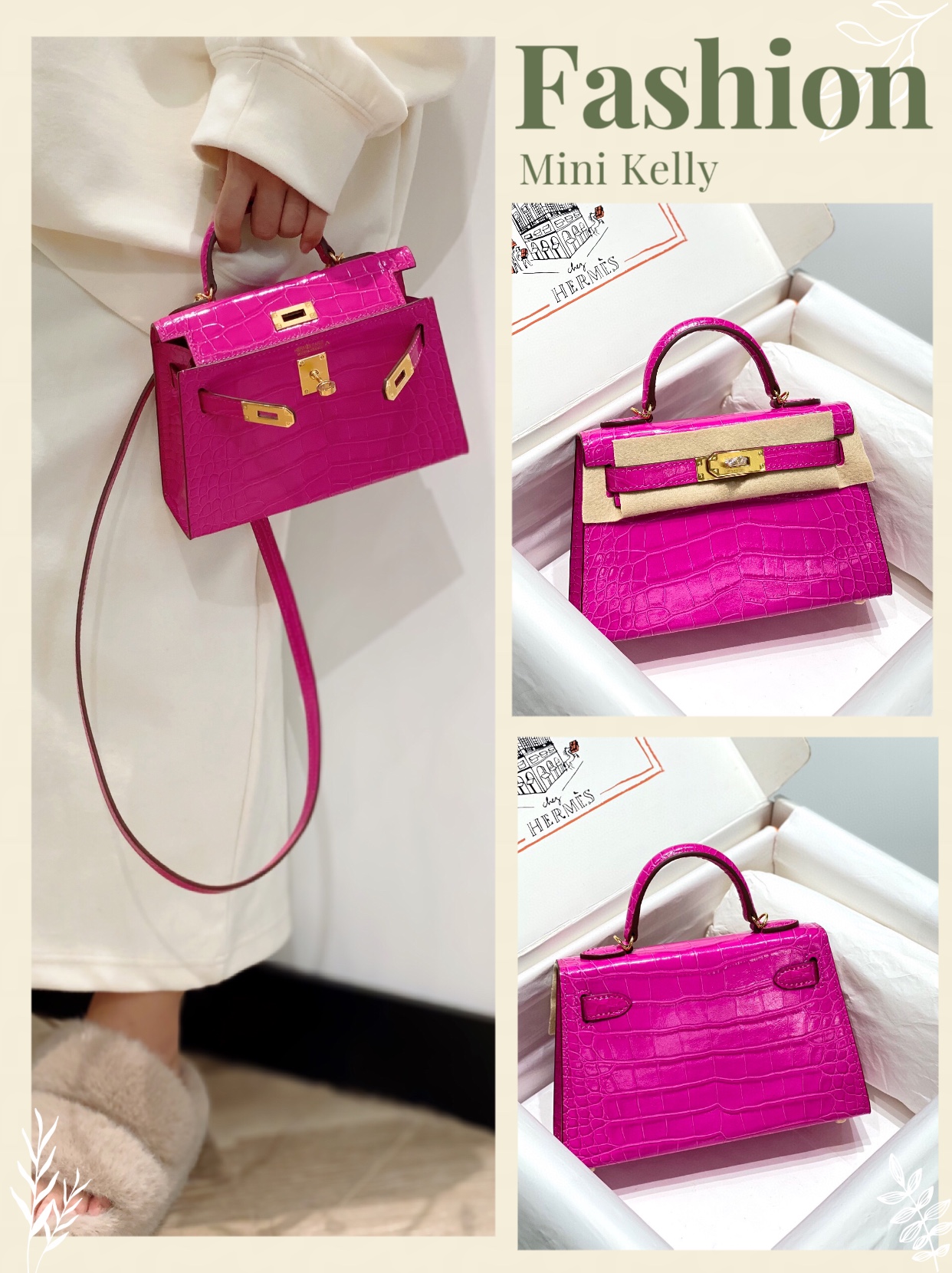 Replica Luxury Handbag Hermes Kelly Bags Hermes Mini Kelly 19cm Rose Crocodile