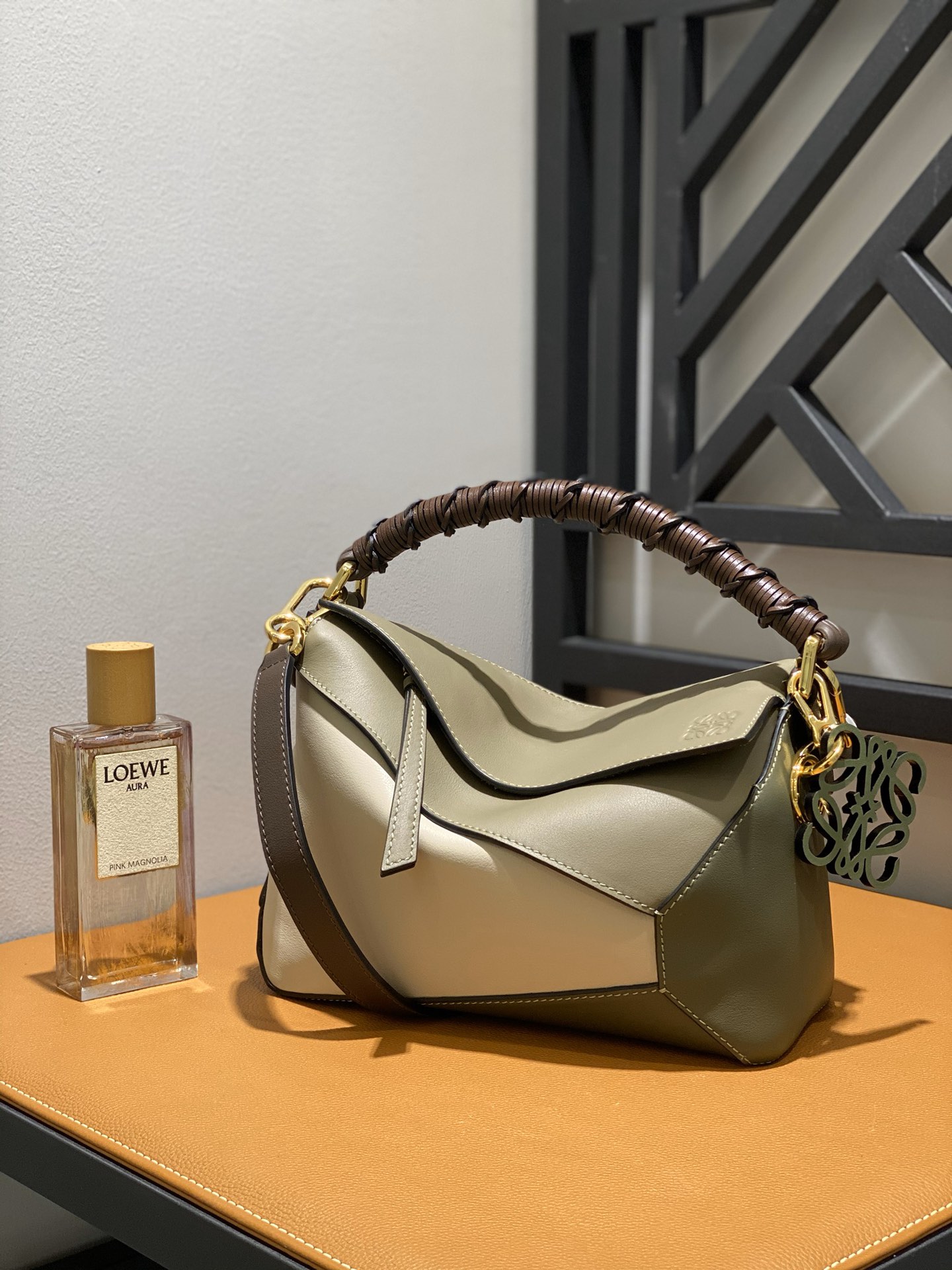 Loewe Small Puzzle Edge Bag in Nappa Calfskin Laurel Green Light Oat