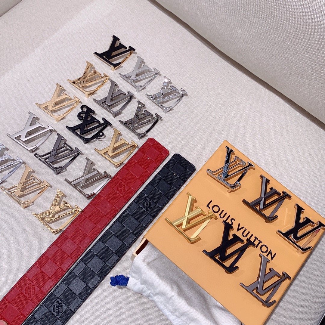 Louis Vuitton Men Leather Belt Width 4CM 150