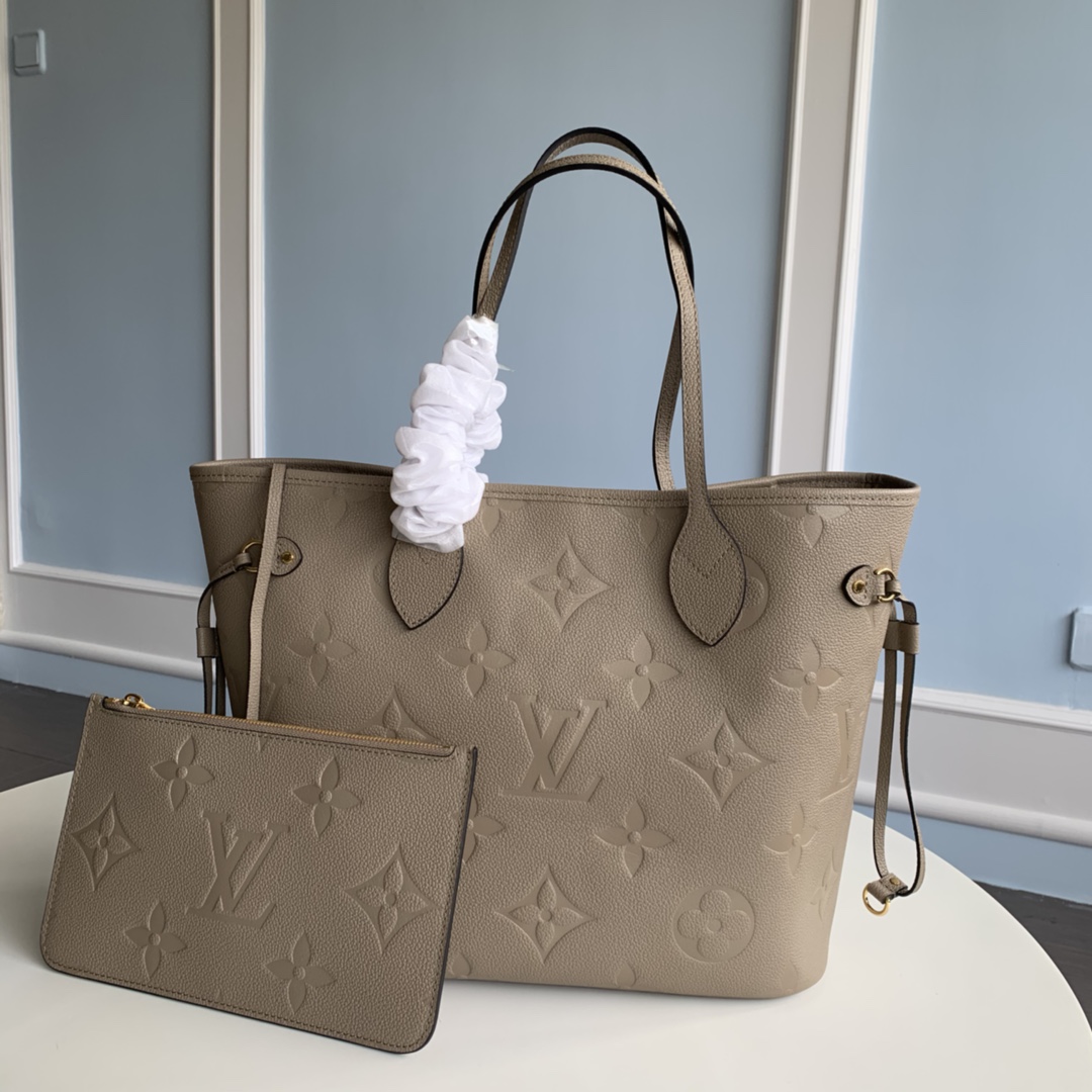 Replica Louis Vuitton M45686 Neverfull MM Tote Embossed Cowhide Leather Tourterelle Gray