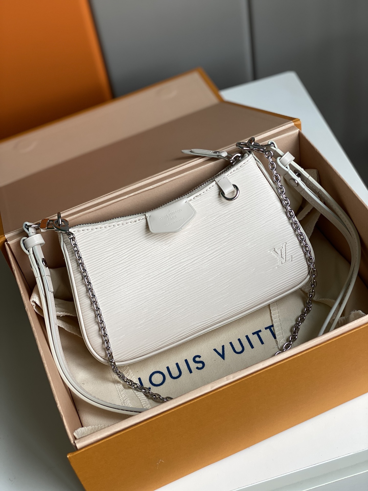 Replica Louis Vuitton Easy Pouch On Strap Epi Embossed Supple Grained Cowhide Leather White