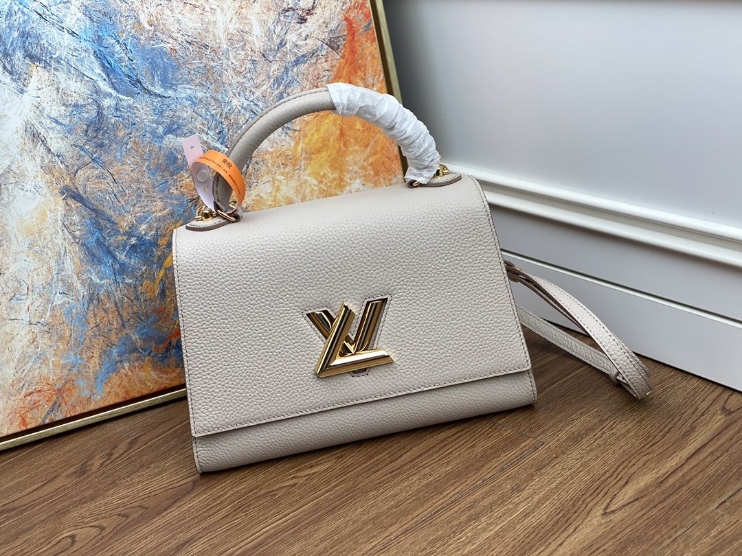 Replica Luxury Handbag LOUIS VUITTON TWIST Replica Louis Vuitton M57092 Twist One Handle MM Taurillon eather Greige
