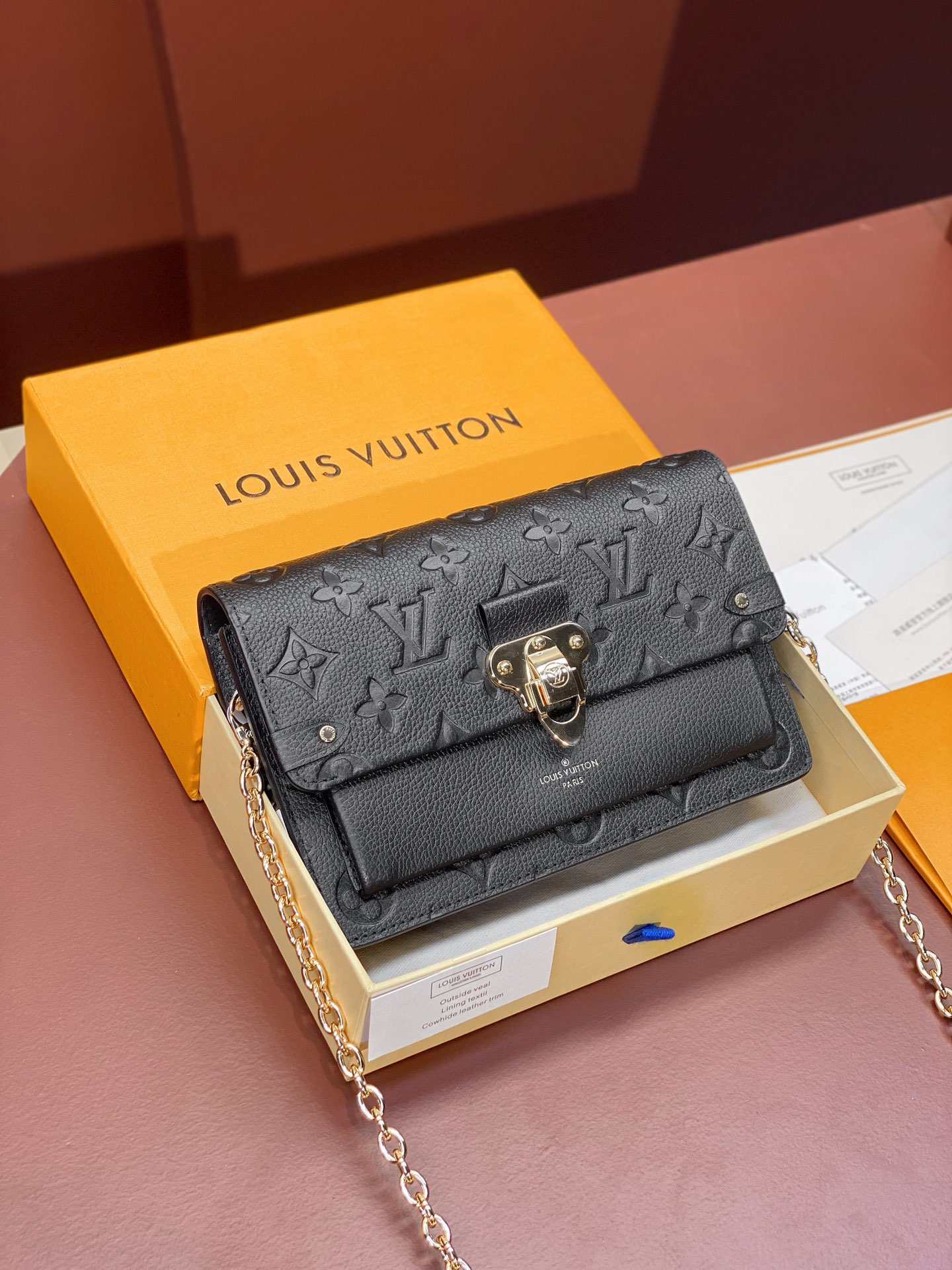 Replica Luxury Handbag LOUIS VUITTON Women Wallet Louis Vuitton M67839 Vavin Chain Wallet Embossed cowhide leather Black
