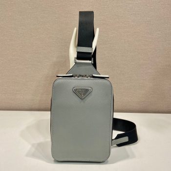 Prada 2VH165 Leather Bag with Shoulder Strap Gray