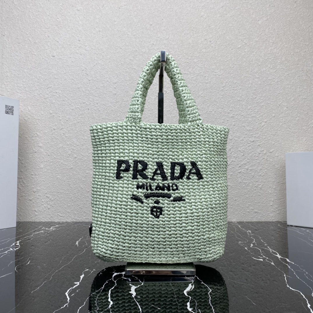 Prada 1BG422 Small Raffia Tote Bag Grass Green