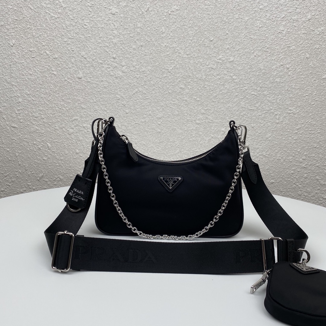 Replica Luxury Handbag Prada Re-Edition Bags Copy Prada 1BH204 Re-Edition 2005 Re-Nylon Bag Black