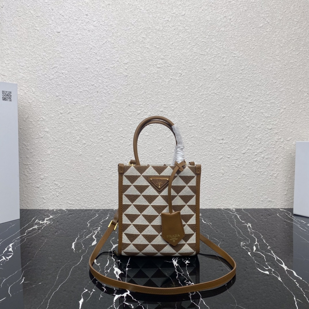 Replica Luxury Handbag Prada Tote Bags Prada 1BA355 Mini Symbole Jacquard Fabric Handbag Tan