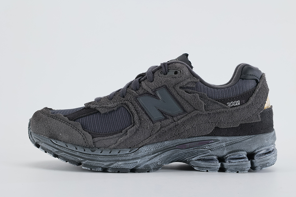 Utilizing a harmonious blend of premium materials, the sneaker features distressed suede and mesh, providing a juxtaposition of durability and breathability. This choice reflects a meticulous attention to both form and function, ensuring that the 2002R ‘Protection Pack – Phantom’ stands out not just for its looks but also for its wearability. The silhouette’s raw edges and layered panels contribute to a dynamic visual effect, further accentuated by the subtle yet impactful ‘Phantom’ hue.