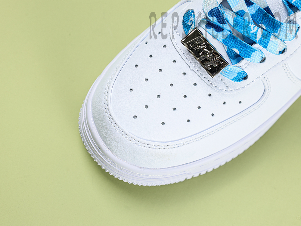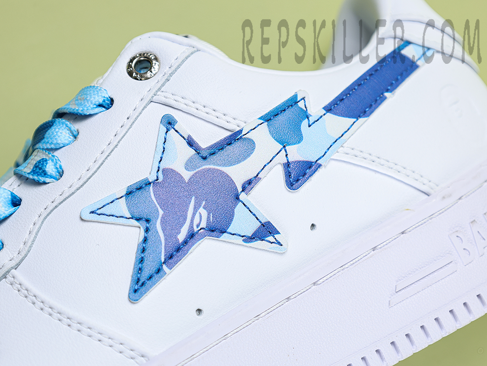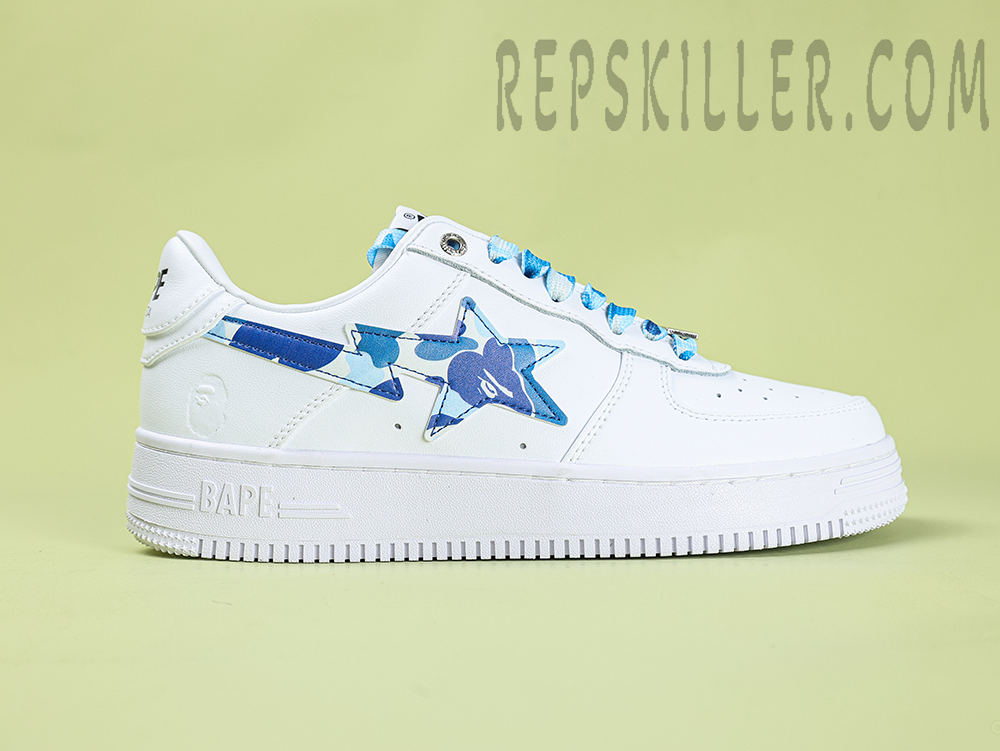 A BATHING APE BapeSta ABC Camo Blue Low Sneakers showcase a clean white upper contrasted by the brand’s iconic blue ABC camo star. Crafted from glossy synthetic leather, these sneakers combine streetwear edge with minimalist appeal, making them a subtle yet standout addition to any collection.