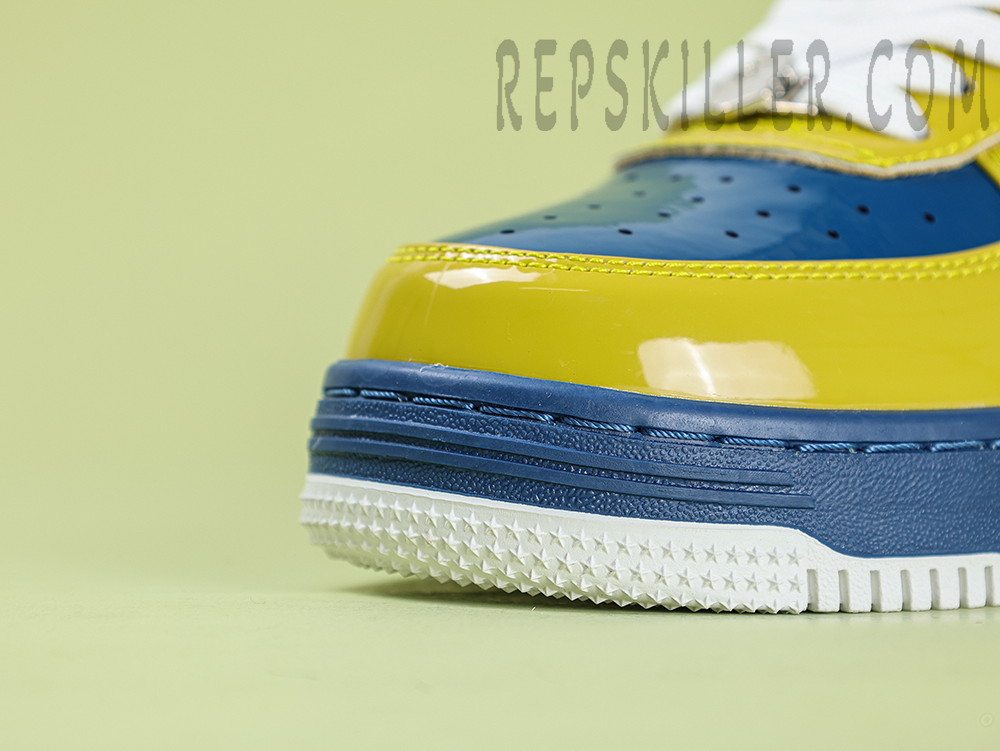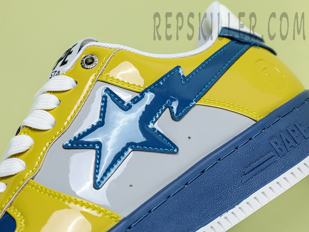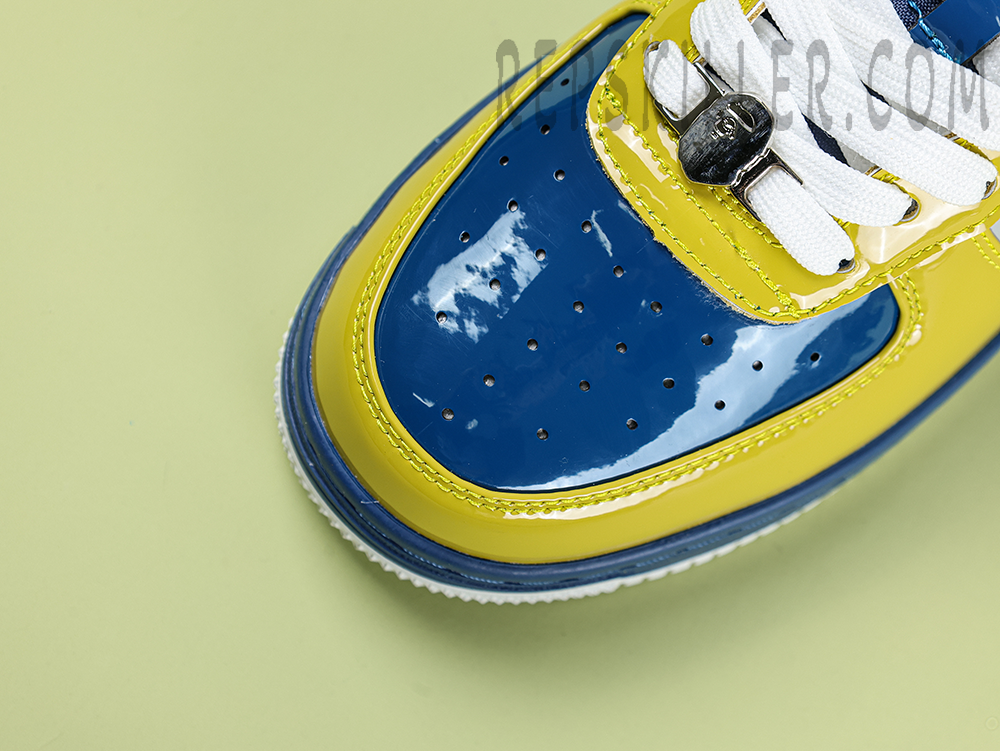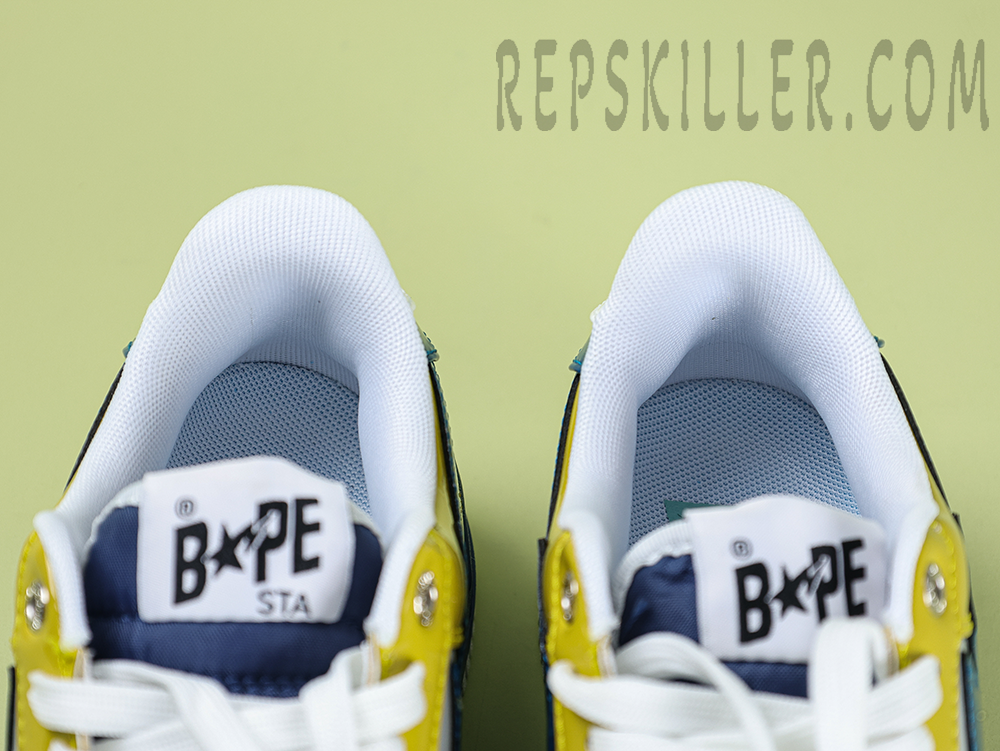 A BATHING APE BapeSta Nostalgic Blue Yellow Low Sneakers deliver striking contrast with a yellow leather upper, deep blue star logo, and matching blue outsole. A crisp white midsole and lining create visual balance, while the padded collar ensures all-day comfort. Bold and nostalgic, these sneakers speak true to BAPE’s legacy.