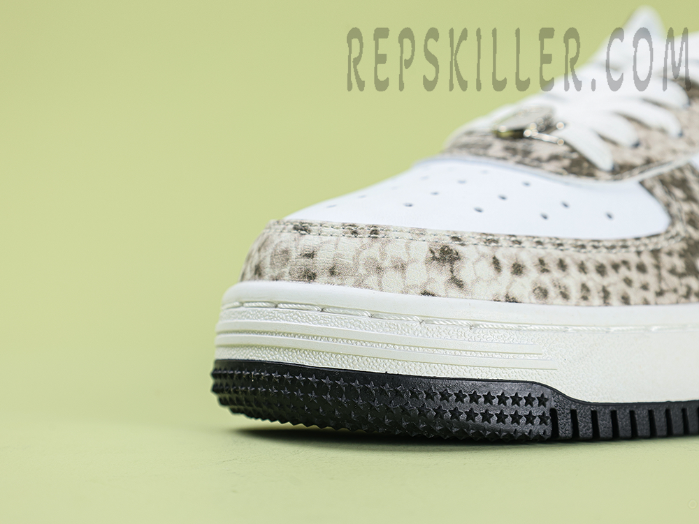A BATHING APE BapeSta SnakeSkin Beige Low Sneakers introduce a luxurious twist to streetwear staples. The beige upper is overlaid with striking faux snakeskin texture, delivering bold attitude while maintaining a neutral, wearable palette. Finished with the signature star logo and crisp sole, these sneakers command attention with refined flair.