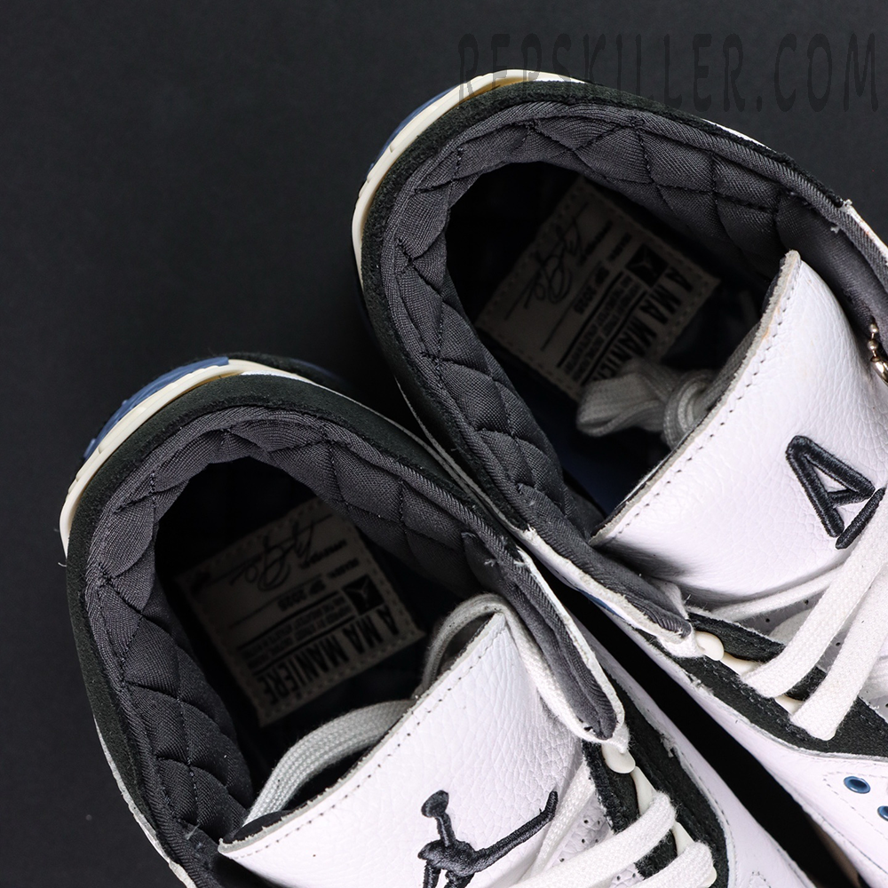 The A Ma Maniére x Air Jordan 3 Retro OG SP ‘For The Love’ delivers a luxurious reinterpretation of the iconic silhouette through premium materials, rich texture, and emotional storytelling. The upper pairs white tumbled leather with charcoal suede overlays, creating a refined balance between sport and sophistication. Replacing traditional elephant print with suede adds an understated premium flair. Diffused blue accents subtly highlight the eyelets, midsole, and heel tab, infusing elegance without overpowering the design. Quilted silk-like lining and tonal branding elevate comfort and craftsmanship, while motivational messages hidden under the heel pull tabs inject depth and meaning into the design.