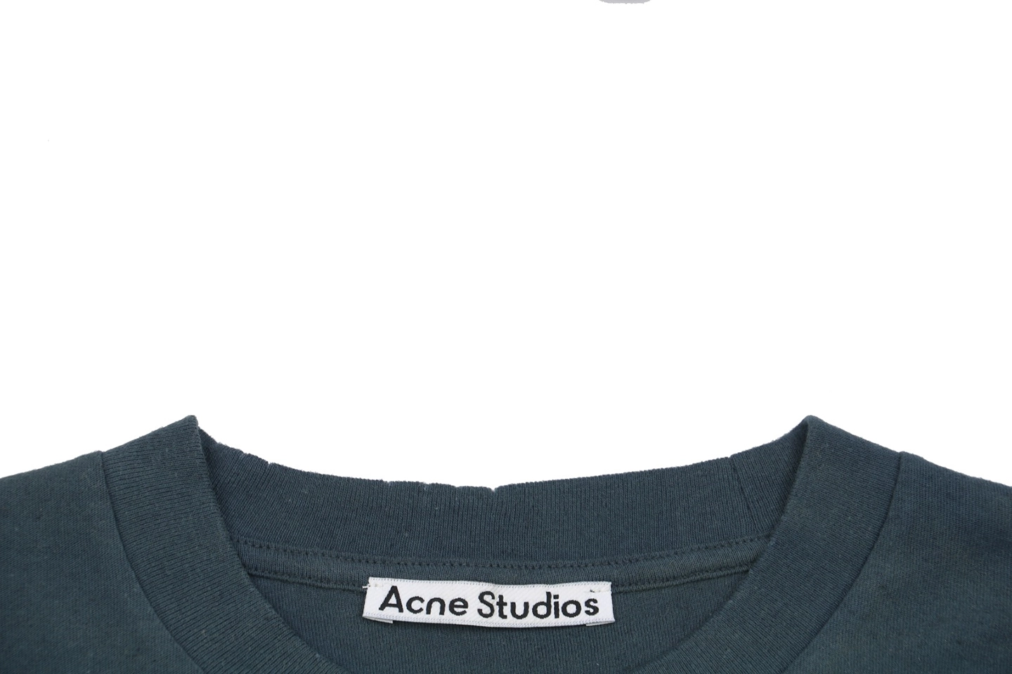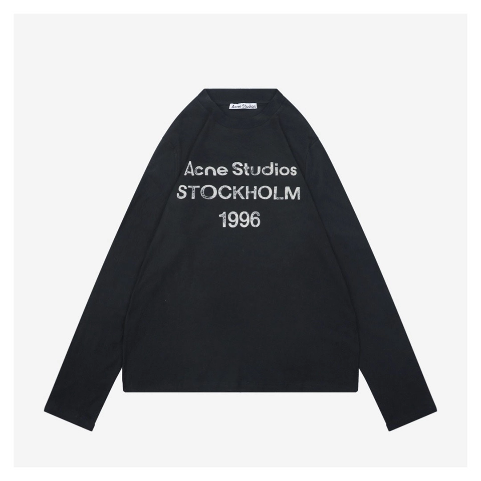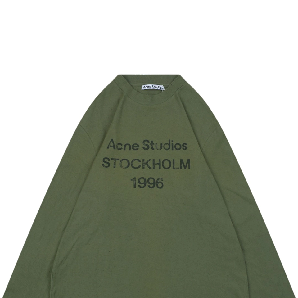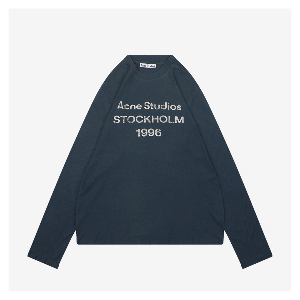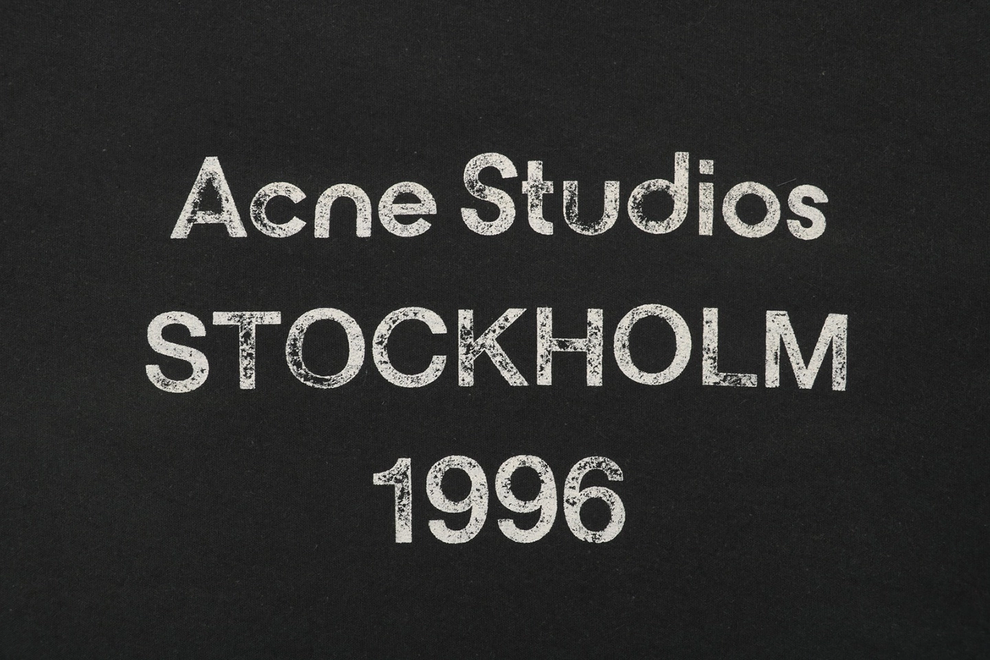 The Acne Studios 1996 Distressed Logo Shirt delivers a minimalist silhouette with a vintage edge. Crafted from soft cotton in a relaxed fit, this piece features a crew neckline and elongated sleeves for everyday comfort. Across the chest, the cracked-effect “Acne Studios Stockholm 1996” print brings a worn-in character that nods to the brand’s roots in contemporary Scandinavian design. Available in versatile shades of navy, black, and army green, it embodies understated street luxury.