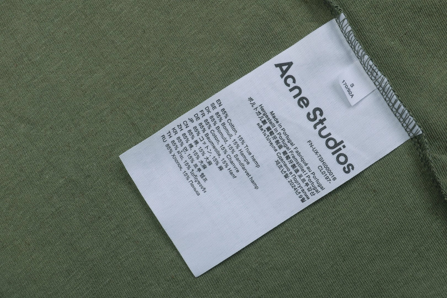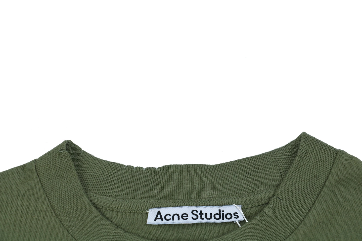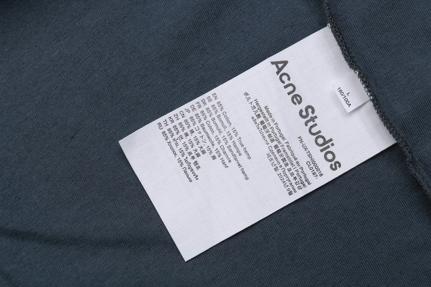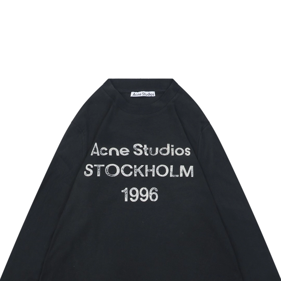 The Acne Studios 1996 Distressed Logo Shirt delivers a minimalist silhouette with a vintage edge. Crafted from soft cotton in a relaxed fit, this piece features a crew neckline and elongated sleeves for everyday comfort. Across the chest, the cracked-effect “Acne Studios Stockholm 1996” print brings a worn-in character that nods to the brand’s roots in contemporary Scandinavian design. Available in versatile shades of navy, black, and army green, it embodies understated street luxury.