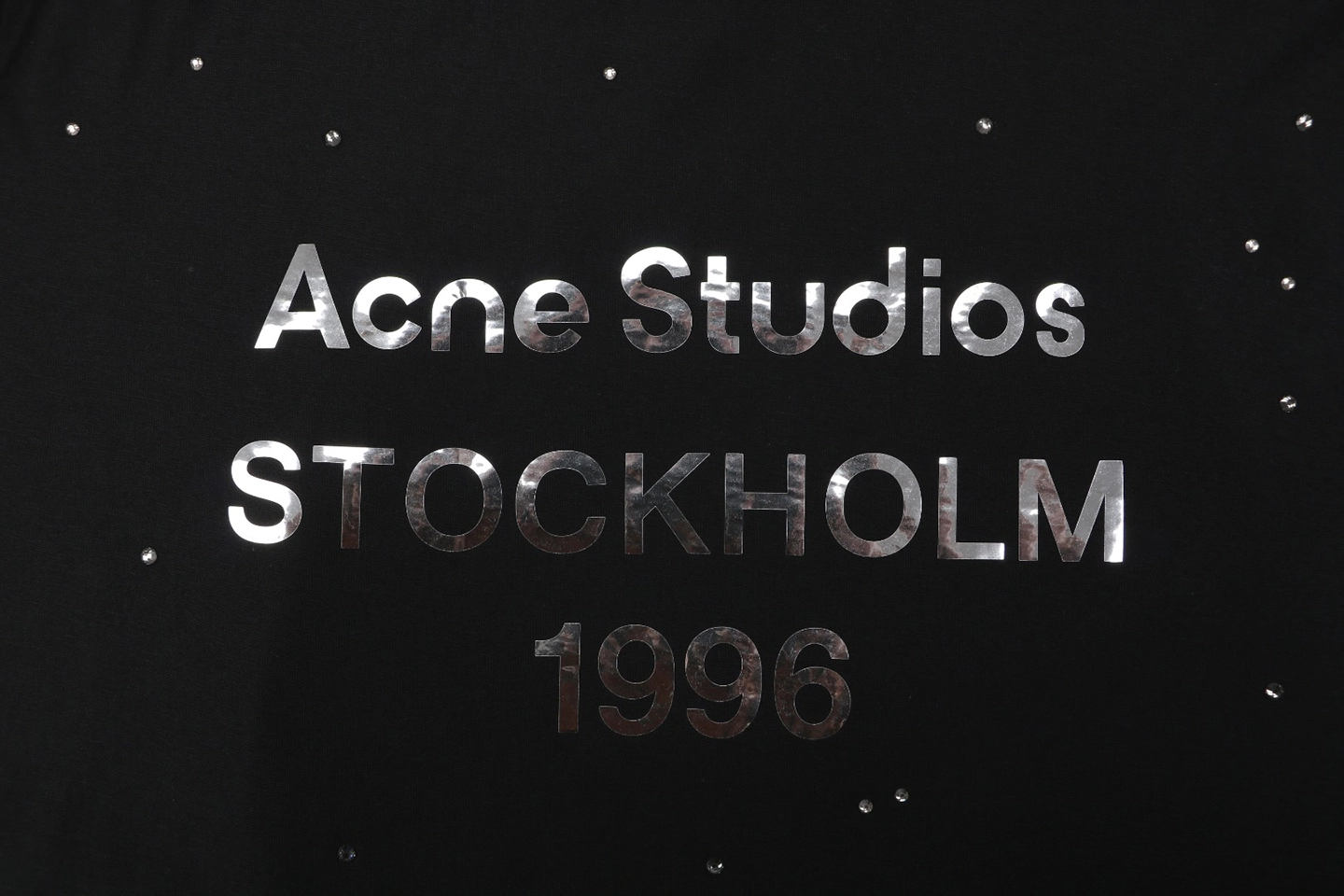 Featuring a mirrored logo print combined with precision-positioned rhinestone embellishments, this long sleeve top adds subtle shine without overpowering the overall aesthetic. The laser-finished graphic and reinforced hot-fix rhinestones ensure durability and wash resistance. Designed with a relaxed fit, it embodies Acne Studios’ signature effortless attitude, making it a versatile unisex piece suitable for everyday wear, layering, or elevated street-style looks.