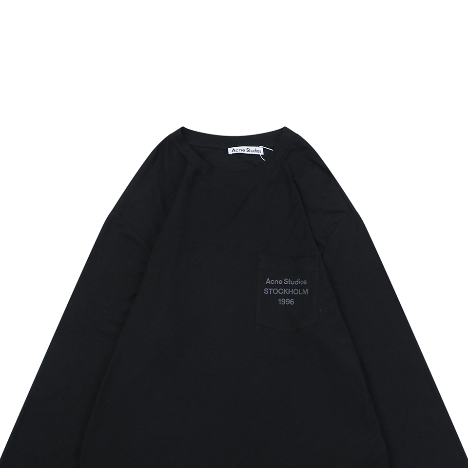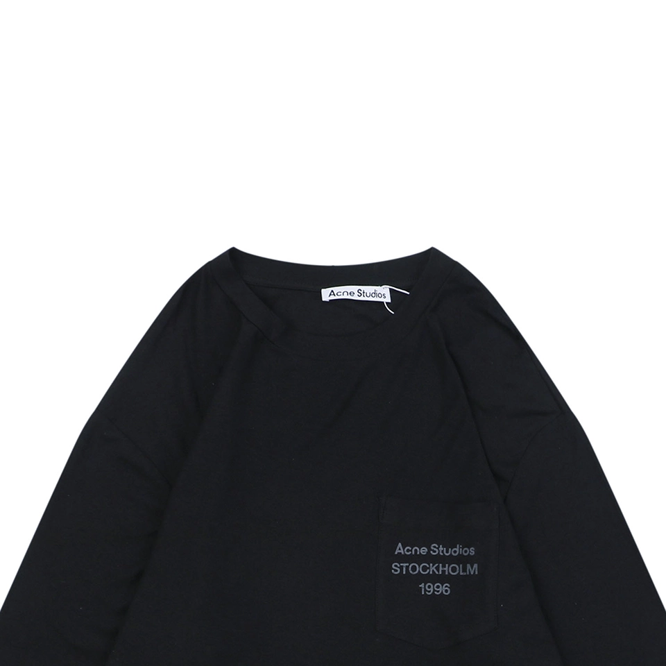 Crafted from soft cotton, this Acne Studios Pocket Logo Print Shirt comes in versatile black and white tones. It features a minimalistic chest pocket with “Acne Studios Stockholm 1996” print, reflecting the brand’s Scandinavian roots. The regular fit and clean silhouette make it a go-to staple for layering or standalone wear. Finished with refined stitching and a crew neckline, it’s perfect for an understated yet elevated casual look.