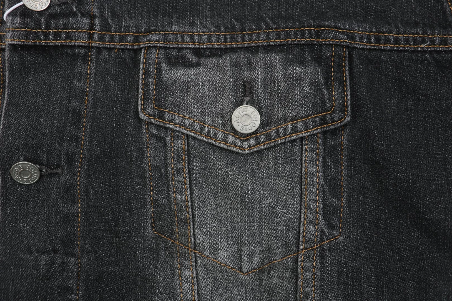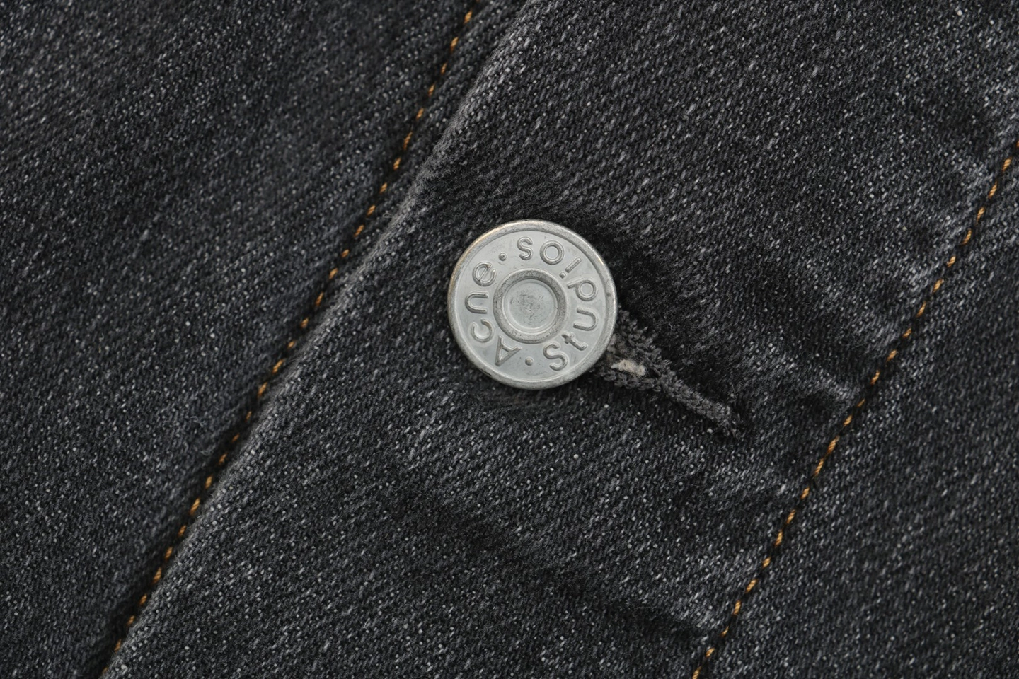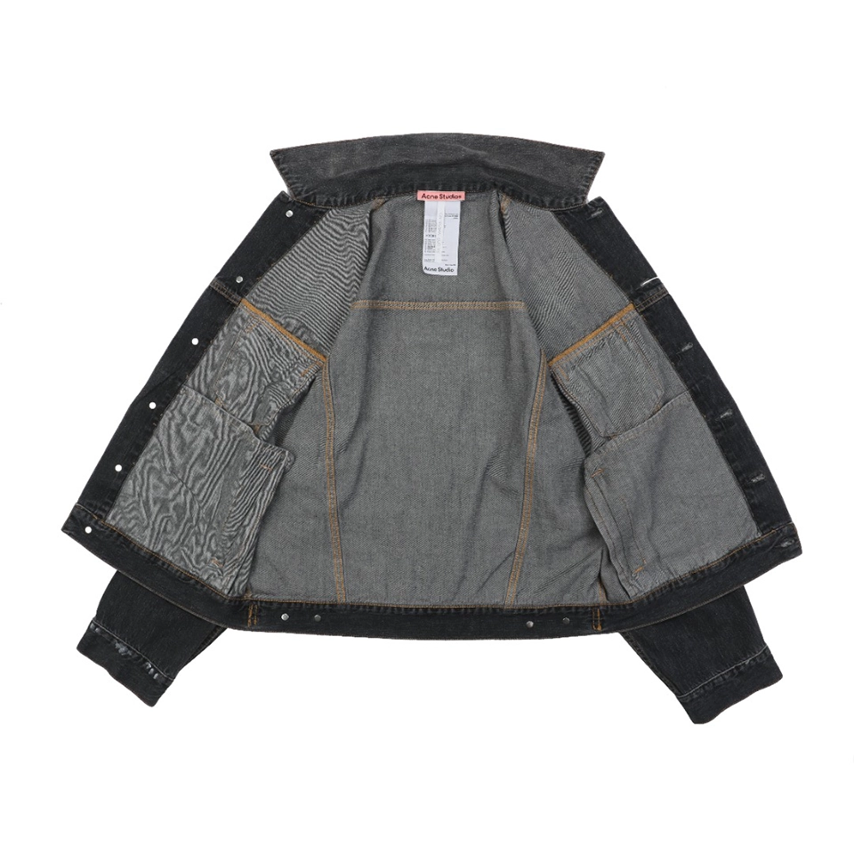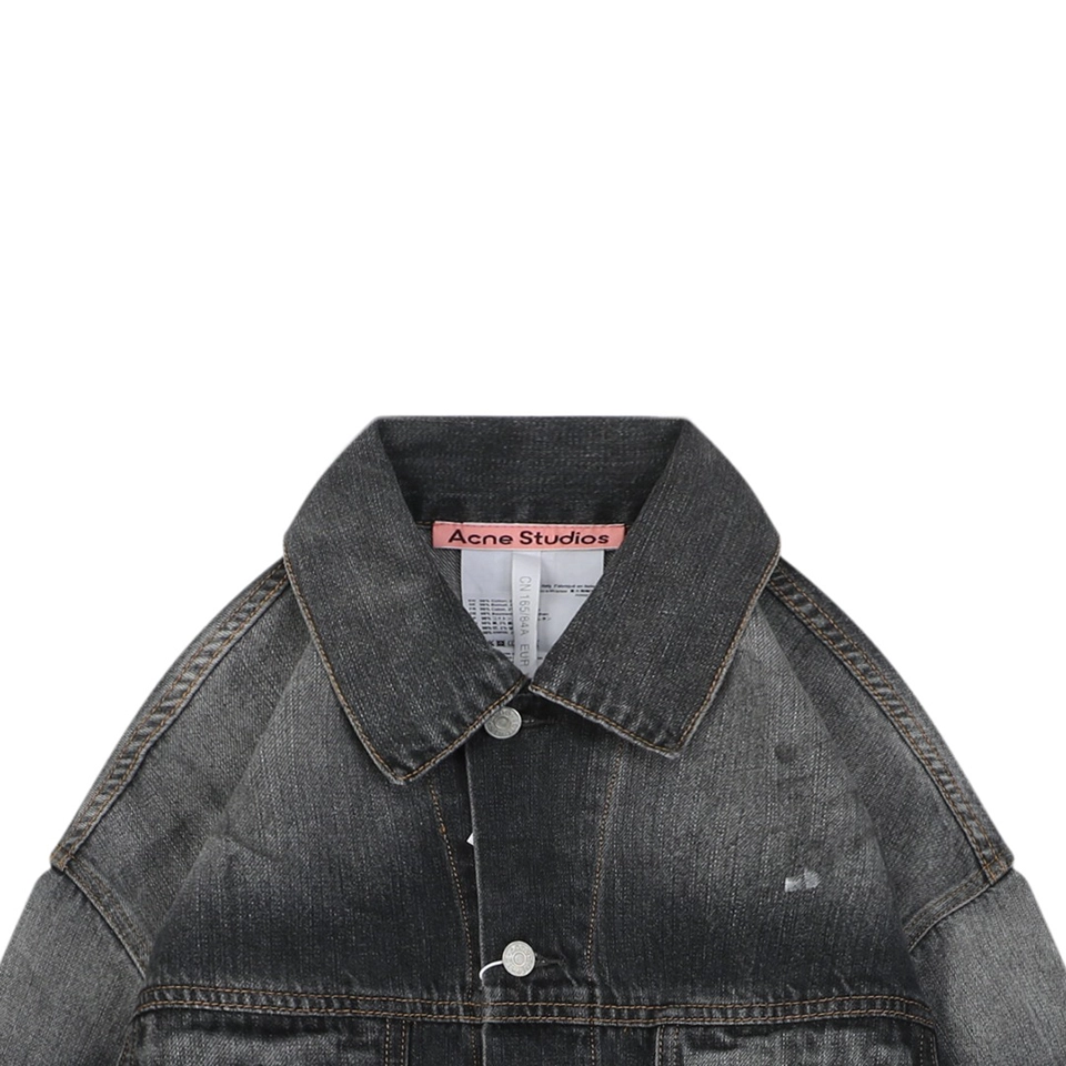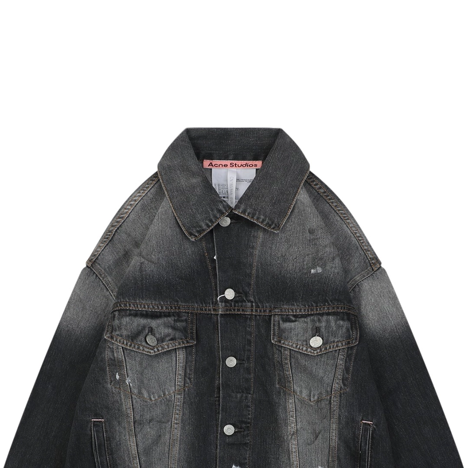 The Acne Studios Washed Paint-Splatter Denim Jacket reimagines a classic silhouette with a distressed wash and subtle paint-splatter accents. Crafted from durable denim, it features a button-front closure, chest flap pockets, and side welt pockets for functionality. The faded black wash and worn-in details give the jacket a rugged yet contemporary appeal, embodying Acne Studios’ signature fusion of minimalism and experimental design.