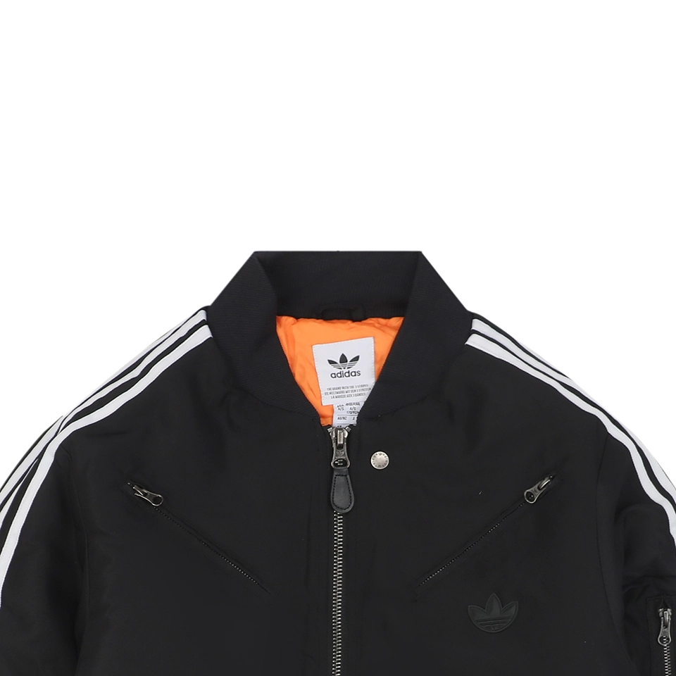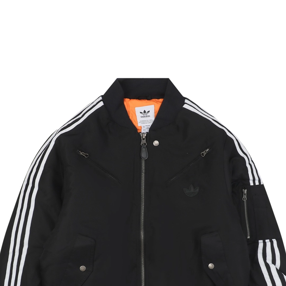 This Adidas 3-Stripes Pocket Padded Jacket merges heritage aviation aesthetics with sporty practicality. Designed with lightweight synthetic padding and strategic ribbed trims at the cuffs and hem, it ensures warmth without bulk. The signature three-stripe shoulder detail enhances visual interest while multiple functional zip pockets add urban utility. Finished with a bold contrast orange lining, this jacket is engineered for both style and comfort.