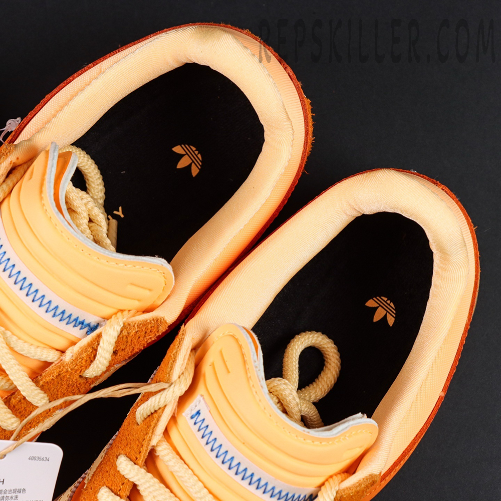 The Bad Bunny x Gazelle Indoor ‘Santurce’ reimagines the iconic adidas silhouette through the Puerto Rican artist’s playful design ethos. Dressed in a muted orange suede upper, the shoe features Bad Bunny’s signature double tongue, an asymmetrical T-toe overlay, and soft pastel peach accents on the serrated leather Three-Stripes and heel tab. The layered construction adds visual depth, while a semi-translucent gum sole keeps the look grounded in classic terrace styling. Bold yet nostalgic, it captures the spirit of “the right thing in the wrong place.”