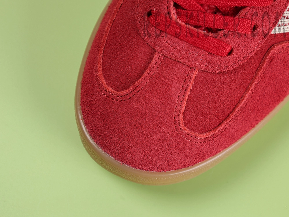 The Adidas Gazelle Indoor W “Better Scarlet” is a classic sneaker from adidas Originals, inspired by the 1979 Gazelle Indoor training shoe. It features a premium red suede upper with cream-colored crocheted 3-Stripes and heel tab, offering a unique visual appeal. The semi-translucent gum rubber outsole provides excellent traction, making it suitable for both casual wear and athletic activities.