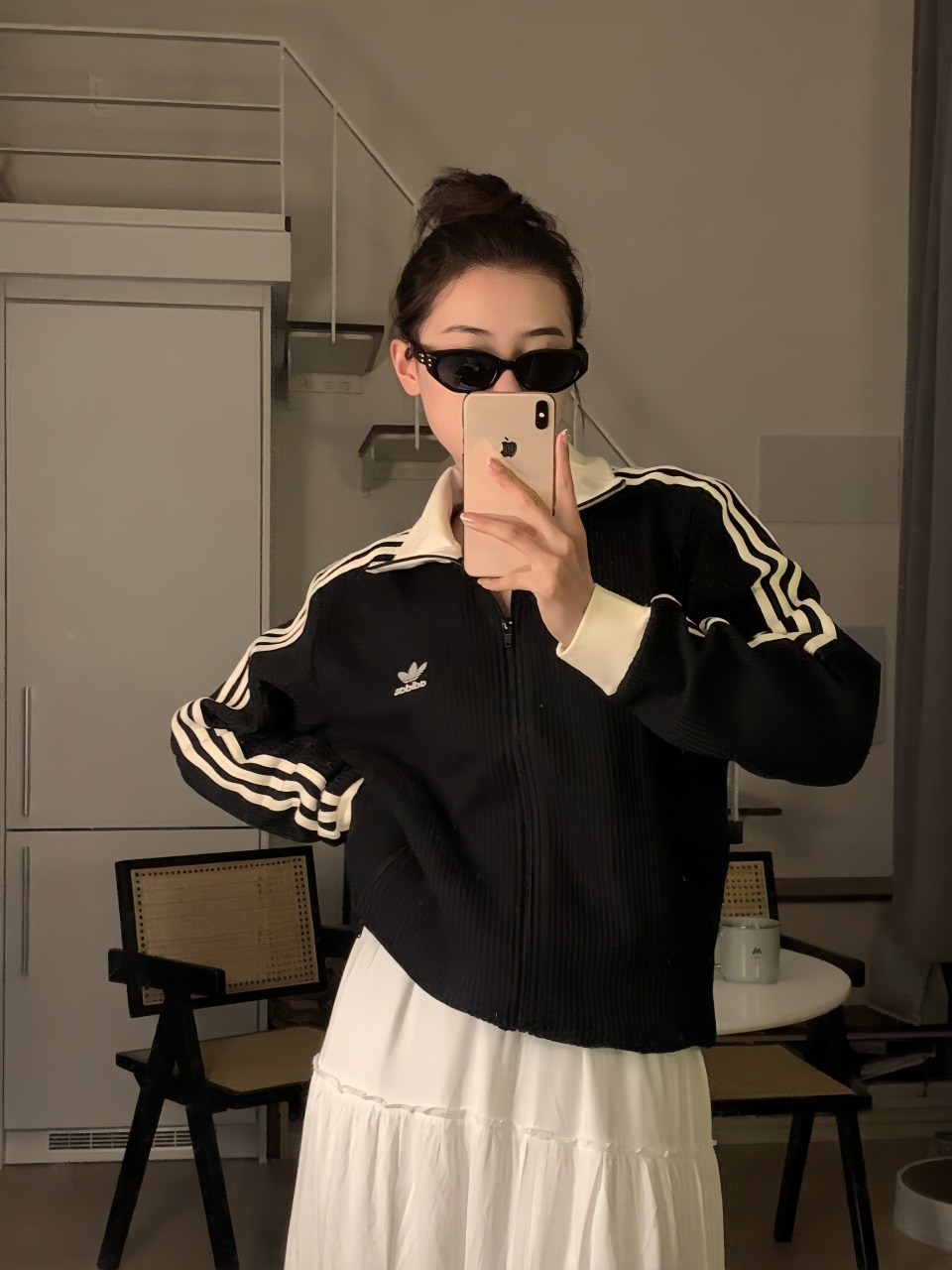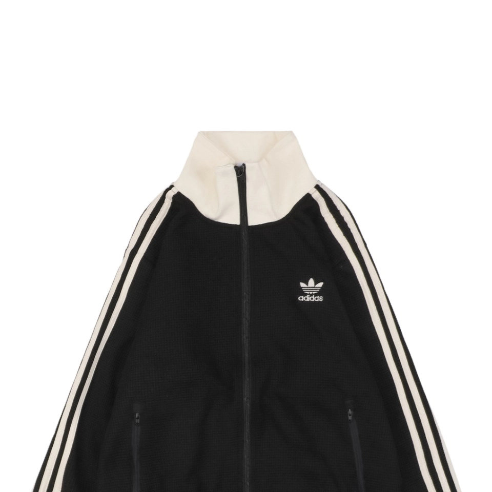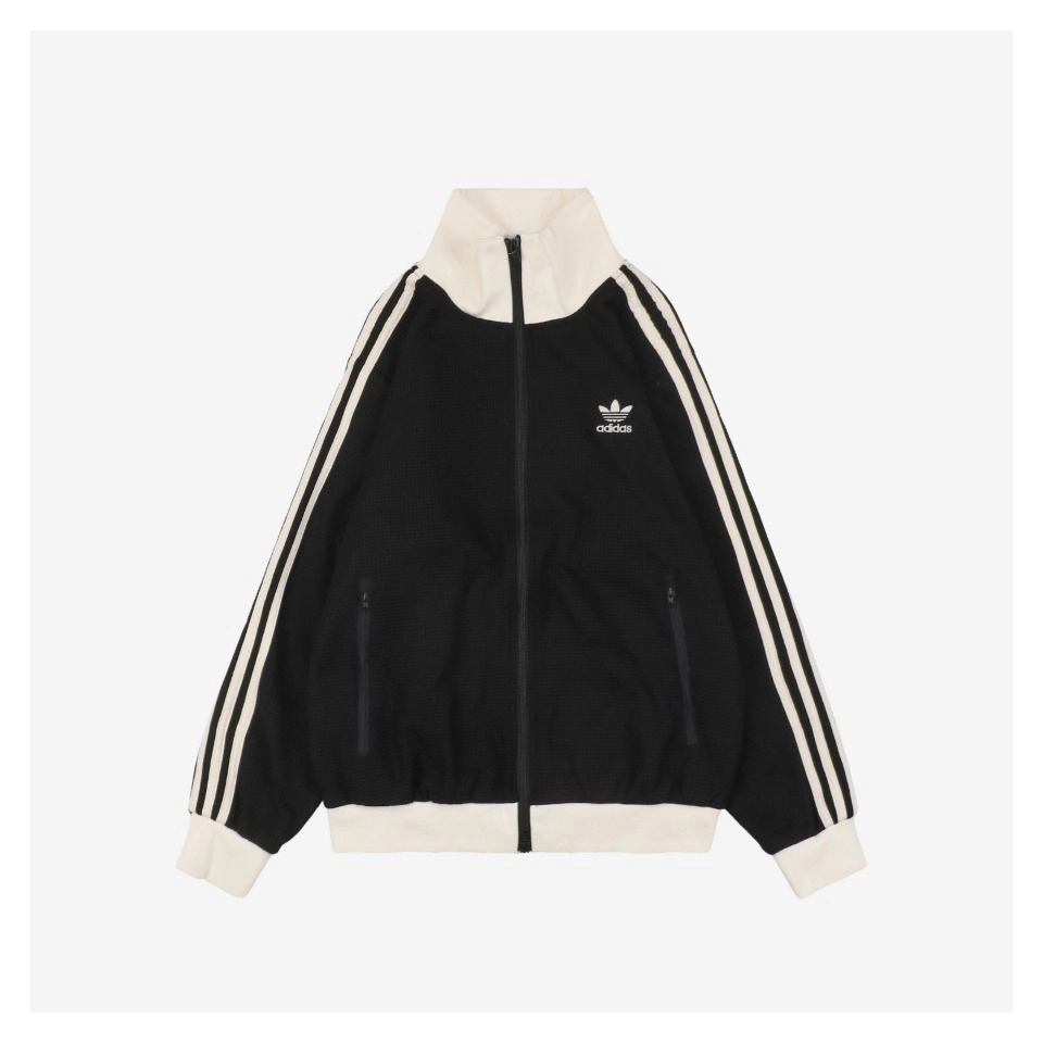 This Adidas jacket is crafted from a unique waffle-textured fabric, offering a lightweight, breathable, and comfortable feel with an elevated texture. Inspired by Adidas Originals’ classic athletic aesthetic, it features a Trefoil logo embroidery on the chest, accompanied by the signature three stripes running down the sleeves. The relaxed fit, stand collar, and full-zip closure provide both functionality and a stylish streetwear vibe. Ribbed cuffs and hem enhance warmth and fit, adding depth to the overall silhouette. Whether paired with track pants, jeans, or cargo pants, this jacket seamlessly blends vintage sportswear with modern street style.